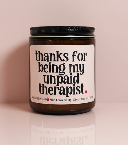 Thanks For Being My Unpaid Therapist | Support Gift | Funny Candles | Encouragement for Friend at Toxic Job