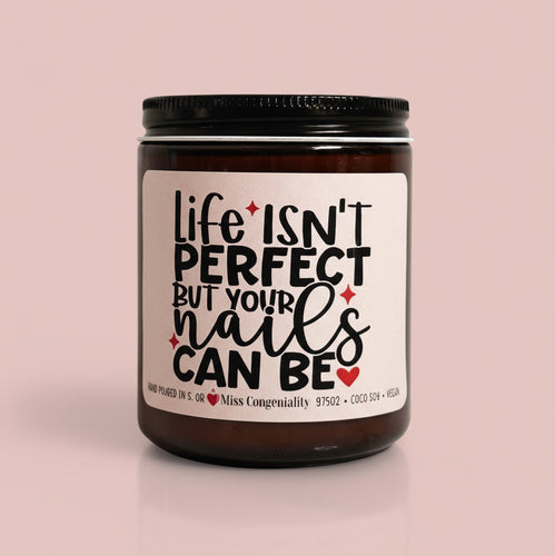 Life Isn't Perfect But Your Nails Can Be | Hand-Poured Organic Clean Burning Candle Gift for Nail Tech | Nail Tech Graduate Gift | Christmas Gift For Nail Tech