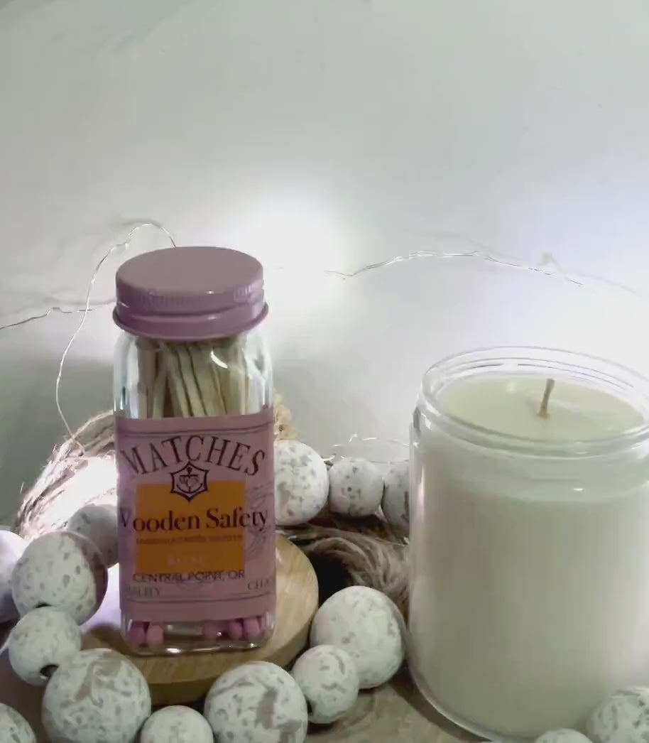 Pink Safety Matches | 3.75 inch pink matches | 4 inch glass jar with champagne inspired label | Cute Matches | Add On Gift | Candle Lover